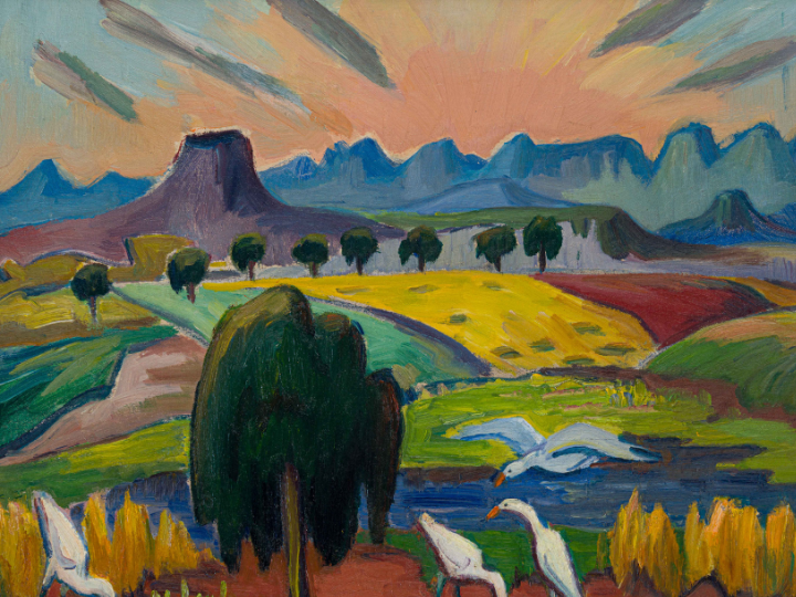 It goes without saying that Pierneef has attracted attention from eminent art historians and critics; thanks to the emotive charge of his pictures, and the historical context in which they were produced, his career has been widely discussed in socio-political terms too. A recent, major retrospective at the Standard Bank Gallery – curated by Strauss & Co’s Wilhelm van Rensburg – has shed a new light on the artist’s imagination, range and decorative appeal, and sealed his position as one of the country’s masters.