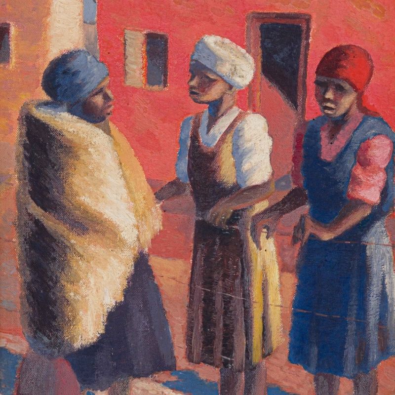 Nhlengethwa’s work was included in the important exhibition Seven Stories about Modern Art in Africa at the Whitechapel Gallery in London in 1995, the 12th International Cairo Biennale in 2010, and (Re)constructions: Contemporary Art from South Africa in Rio de Janeiro in 2011. The artist was a founding member, with Pat Mautloa, Sandy Burnett and David Koloane, of the Bag Factory Artists’ Studios in Newtown in 1991.