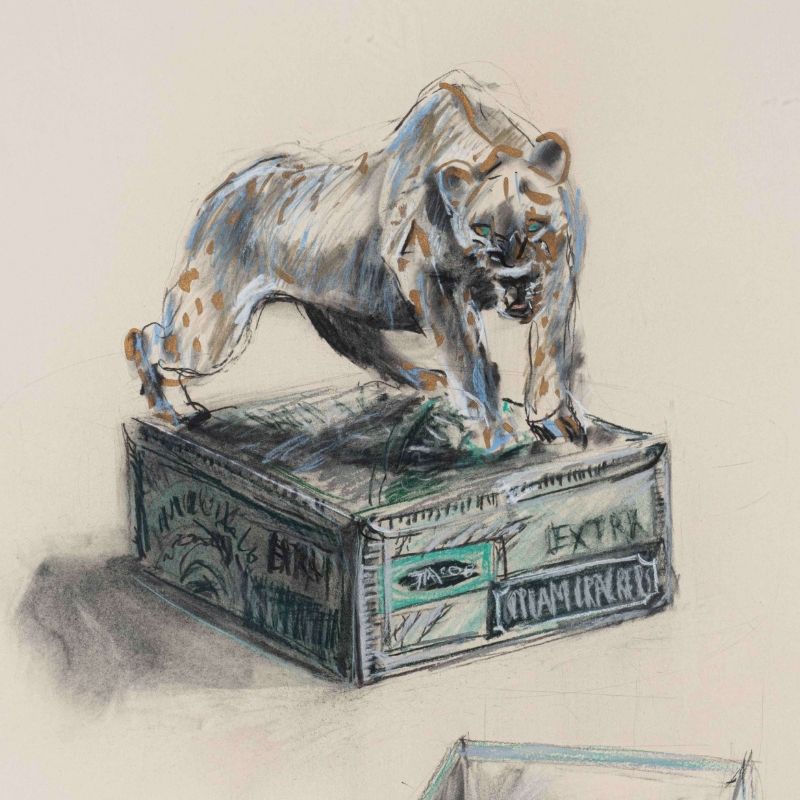 The artist is best known for his figurative paintings and collage works exploring themes of social and art history, jazz, mining, and domestic life, as well as his iconic goat lithographs and the series of tributes to other artists printed at The Artists’ Press in White River. His current figurative style post-dates a series of large, bold abstract works following his participation in the Thupelo workshops, founded in 1985 by artists David Koloane, Bongi Dhlomo and Bill Ainslie. The annual, two-week workshop programme is associated with a flourishing of modernist abstraction among urban black artists.