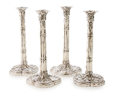 A set four George III silver cluster column candlesticks, I.C, London, 1774