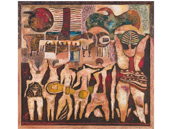 Museum of Modern Art in New York, realised R531 415 / $33 160. Sibiya’s large figural composition The Village (1993) achieved R211 050 / $13 167, double its pre-sale estimate.