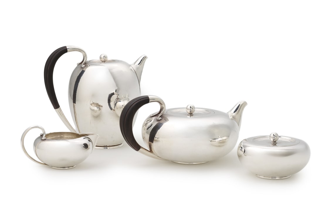 A Georg Jensen silver tea set, designed by Johan Rhode, 1856-1935