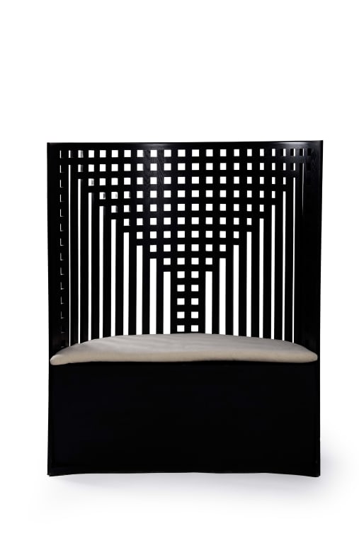 Charles Rennie Mackintosh was a Scottish architect and designer who was known for blending the Arts and Crafts movement with Art Nouveau influences. The Willow chair blended organic inspiration with abstract geometry and was designed in 1902-1904 for the Willow Tearoom in Glasgow. The high, semi-circular back enclosed the sitter providing privacy, while elevating this chair from ordinary seating with its iconic presence.
