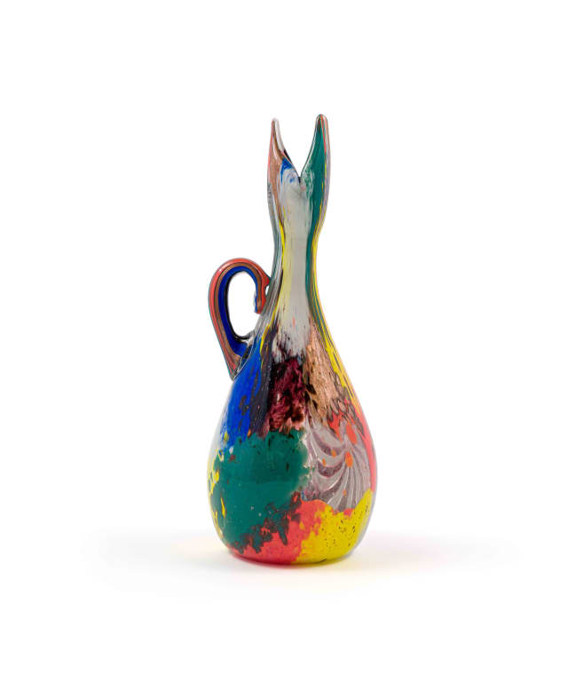 Dino Marten could effectively fuse abstract art with Murano's traditional glassblowing. While he was with Auriliano Toso, he developed a new range of glass sculptures which were known as 'Oriente'. These vases were characterized by their lively colours and fluid designs. Most of them were marked by deliberate asymmetry.