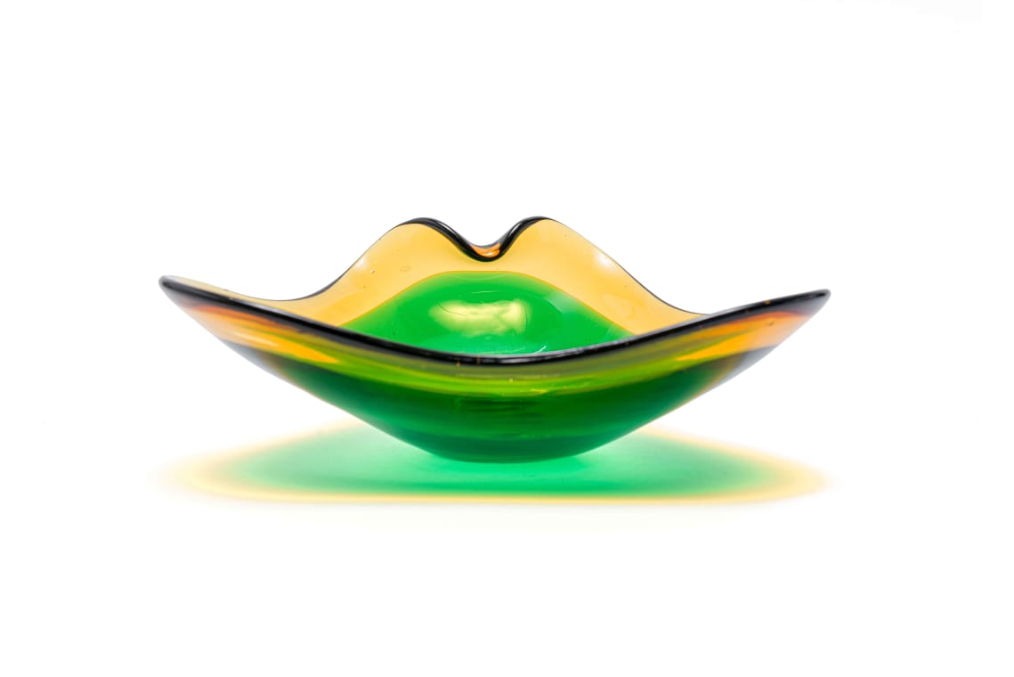 Sommerso meaning submerged in Italian, was a technique where layers of different colour glass were encased in clear crystal.
