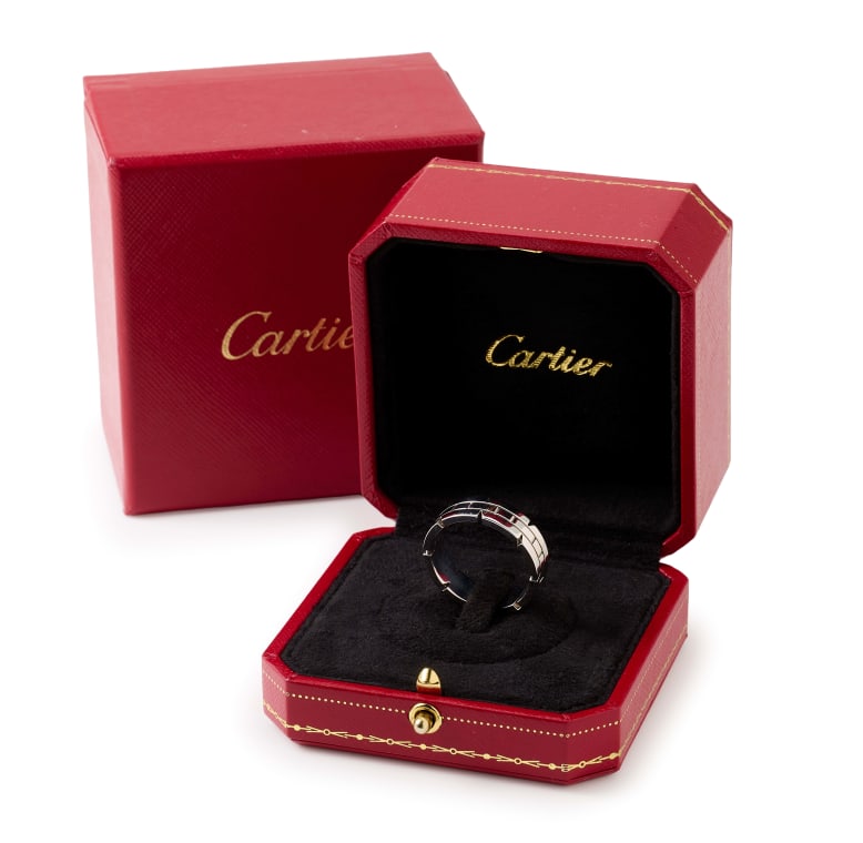 linear geometric pattern, inspired by iconic "Cartier Tank Watch", 18k white gold, stamped Cartier and serial number, size X, total weight 13.50 grams