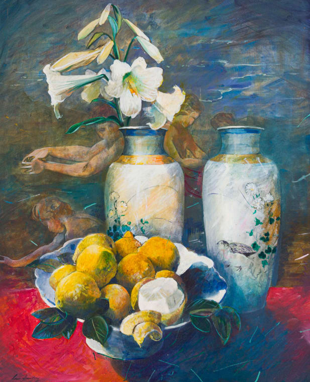 105 by 85cm excluding frame; 110,5 by 91 by 4,5cm including frame