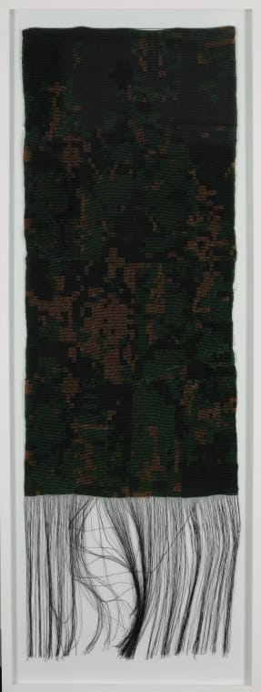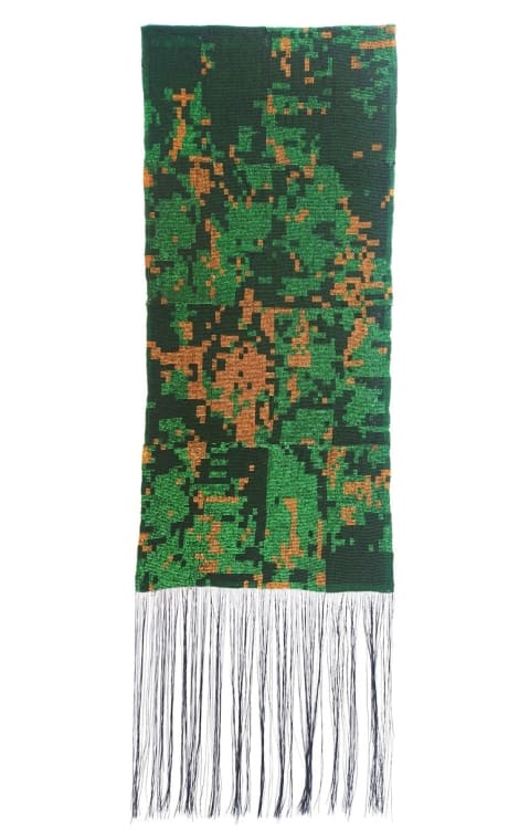 Rooted in the importance of process, Arabella Caccia's work is a profound exploration of nature and being. This beaded hanging, Photosynthesis, is a testament to that journey, embodying her unique mark-making style. Using a meticulous weaving technique, Caccia translates an "alphabet" of glyphs, derived from her study of natural patterns, into a tangible form. "I see the patterns in nature as a kind of language," she explains. "My work is about translating that language, allowing the inherent energy of a tree's bark or a leaf's structure to tell its own story." The artwork's name is a core concept, as the beadwork itself seems to mimic the intricate, life-sustaining process of photosynthesis. The interplay of dark greens and vibrant gold evokes the energy and transformation of sunlight into life, echoing the patterns found in bark and foliage. Ultimately, the piece invites viewers to contemplate the essential state of being and the fundamental energy of the natural world.