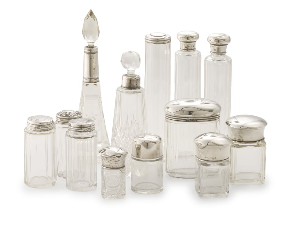 A miscellaneous group of Victorian silver-mounted glass bottles, Walter Harrison Walter, Birmingham, 1900