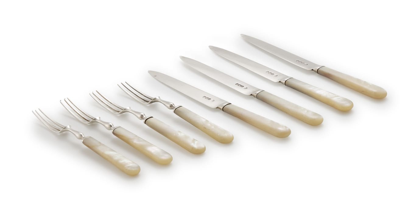 A George III silver and mother-of-pearl fruit set, William Hutton & Son Ltd, 1924