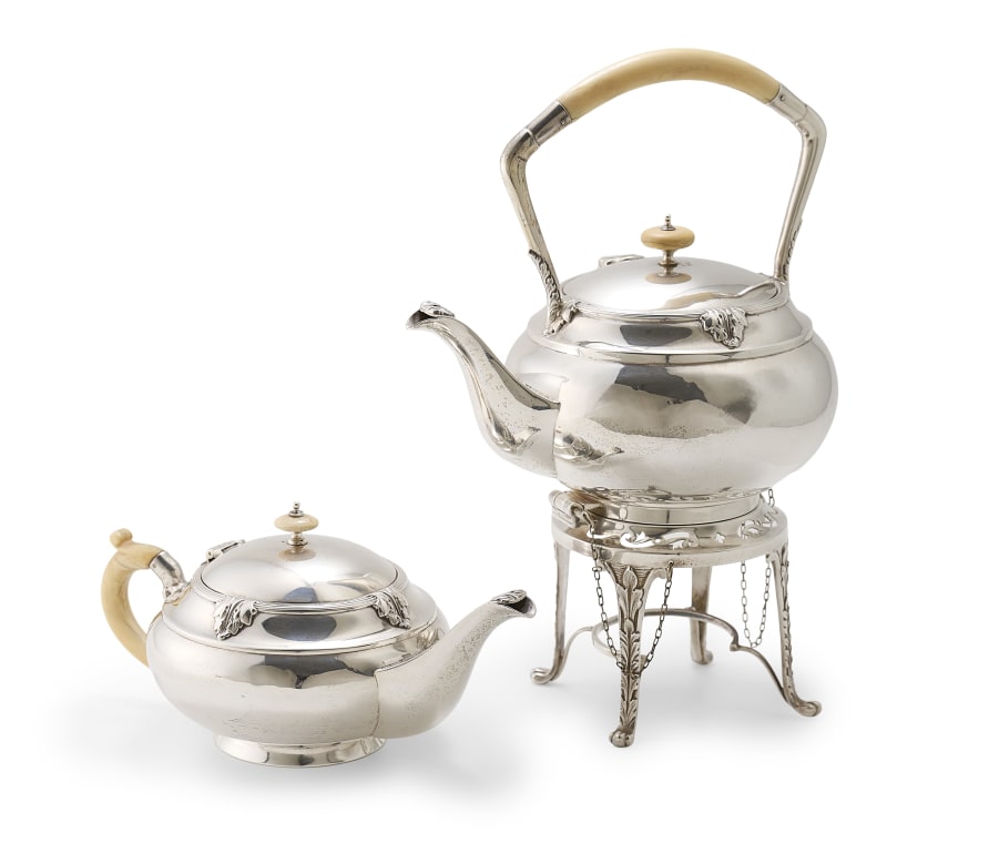 A George V silver kettle-on-stand and teapot, William Hutton & Sons Ltd, Sheffield, 1927 and 1931