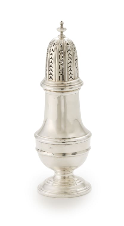 An Elizabeth II silver sugar caster, Barker Ellis & Co, Birmingham, 1972