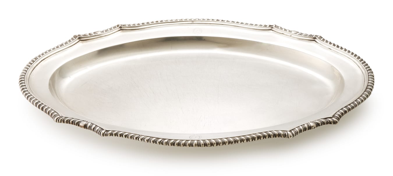 oval, with wavy gadrooned border, the rim engraved with crests, 2080g