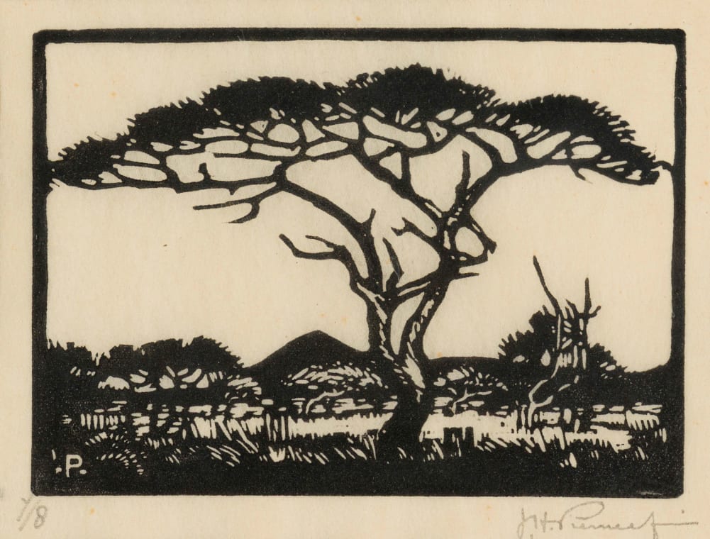 FEG Nilant (1974) Pierneef Linoseë, Cape Town: A. A. Balkema, another impression from the edition illustrated in black and white on page 131 with the title 'Doringboom in Veld'.