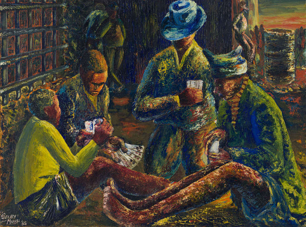 signed and dated '55; inscribed with the artist's name, the title, date and medium on a label adhered to the reverse