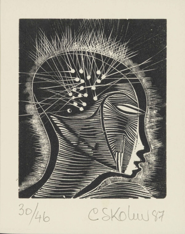 The present lot is one of 20 woodcuts and engravings produced by Cecil Skotnes for the portfolio Pilgrimage to Dias Cross, 1987, by Guy Butler.