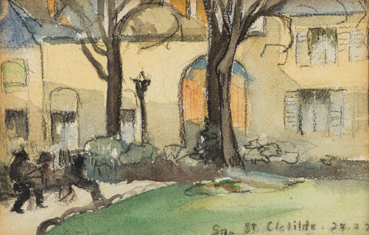 indistinctly dated and inscribed with the title; inscribed with the artist's name and the medium on a label signed by EN Kachelhoffer, Hoffer Art Gallery, dated 4-11-86