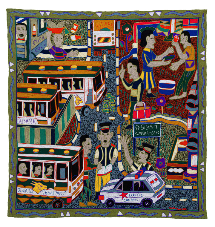 104,5 by 100cm excluding frame; 132 by 125 by 6,5cm including frame