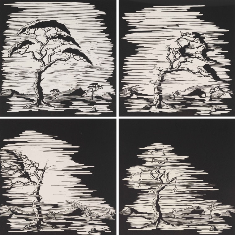 each image size: 50 by 49,5cm; each: 93 by 90 by 7cm, including frame