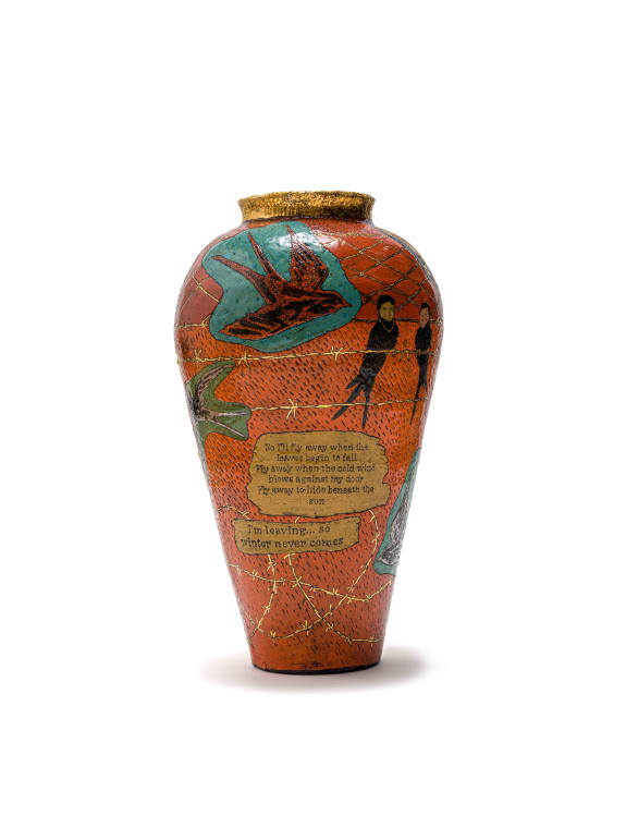 painted and glazed ceramic with gold lustre