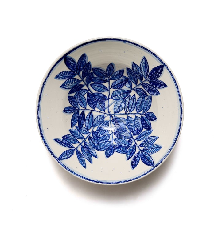 Large bowl with blue leaf motif