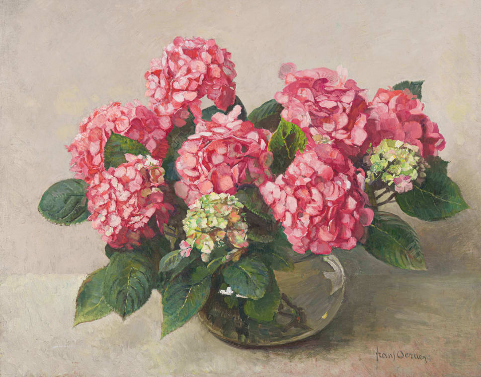 Pink Hydrangeas in a Glass Vase