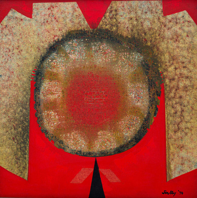 59,5 by 59,5cm excluding frame; 71,5 by 73,5 by 5,5cm including frame
