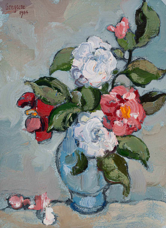Japonikas in Blou Vaas (Camilias in a Base Vase)