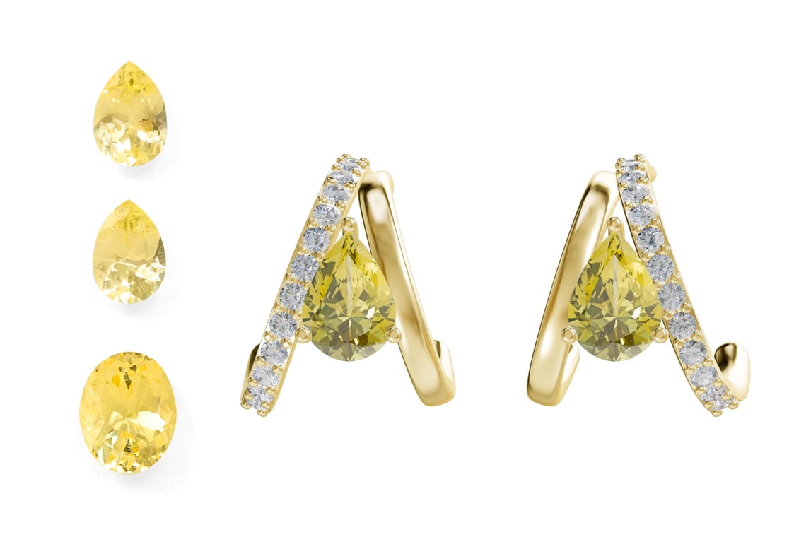 one oval-cut light yellow danburite weighing approximately 1.53 ct, two pear-cut light yellow danburites weighing approximately 1.18 ct.