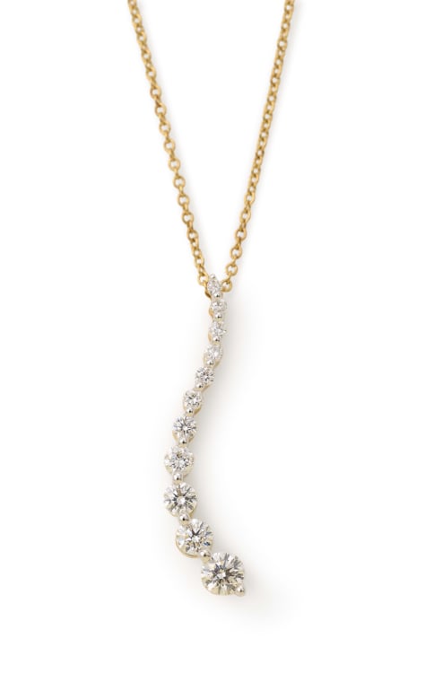 a gentle curve shape with 11 claw-set round brilliant-cut diamonds graduating in size weighing approximately 0.49 ct, a hidden bail, on an anchor chain, 18k yellow gold, length approximately 42cm, total weight 2.90 grams
