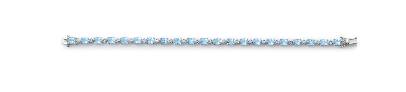 21 claw-set oval-cut aquamarines weighing approximately 8.33 ct, alternating with 21 pavé-set round brilliant-cut diamonds weighing approximately 0.31 ct, box clasp, 18k white gold, length approximately 18cm, total weight 8.41 grams