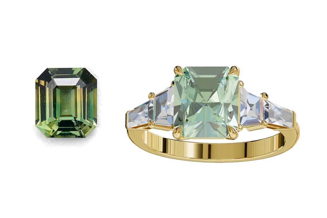 an emerald-cut teal (colour change ) sapphire weighing approximately 2.64 ct, with GIL certification 202505052770847