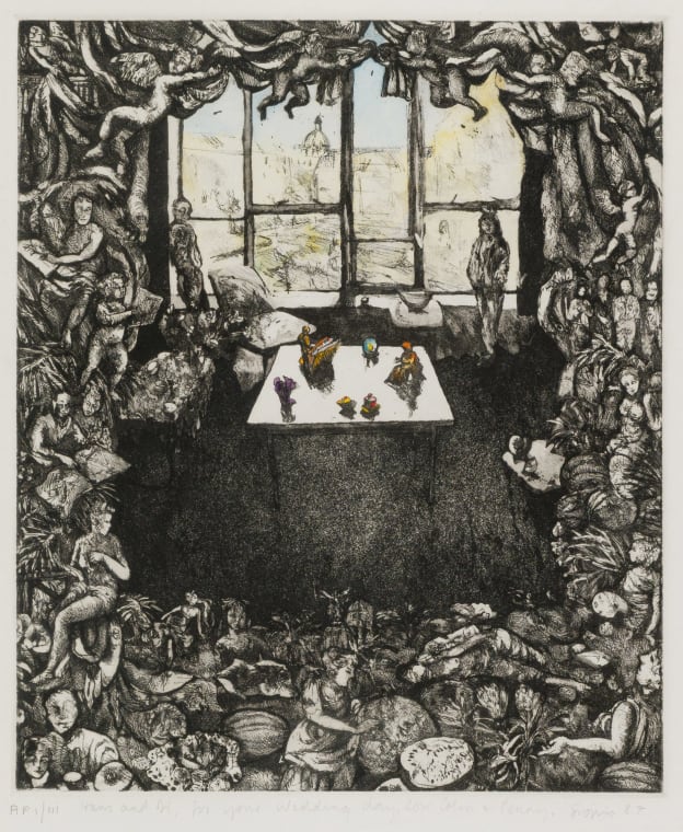 Inscribed 'To Hans and Di for your wedding day, love Colin + Penny' in pencil in the margin.