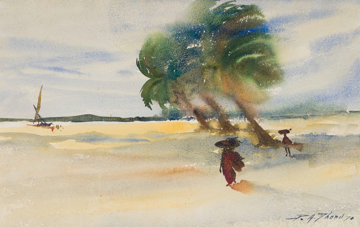 Beachscape with Figures and Palms