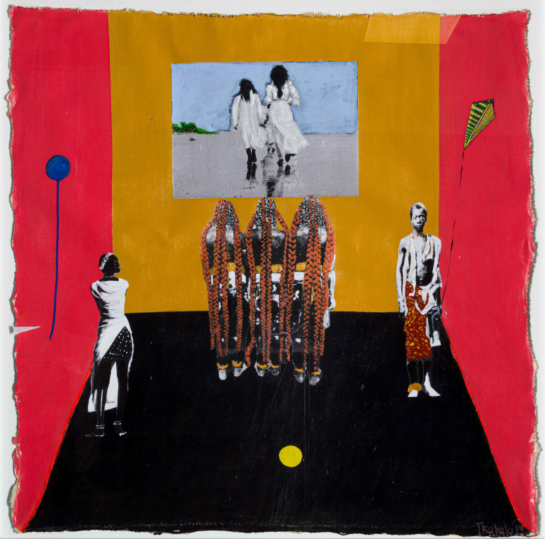 “The female figures pictured in the artwork reference the Mbalantu tribe who reside near the Angolan and Nambian border. Many of their traditions revolve around or are given expression through different hair styles. The girls and women of the Mbalantu prepare their hair in different styles to reflect the different stages of their lives and the status this brings. Firmino is preoccupied with revisiting historical narratives. 'History is often biased and one-sided, so to get a better understanding I reimagine my past in this so-called truth,' says the artist. Personal memories and historical events and imagery are combined and presented in interior scenes that function as possibilities and invitations to reimagine the past."