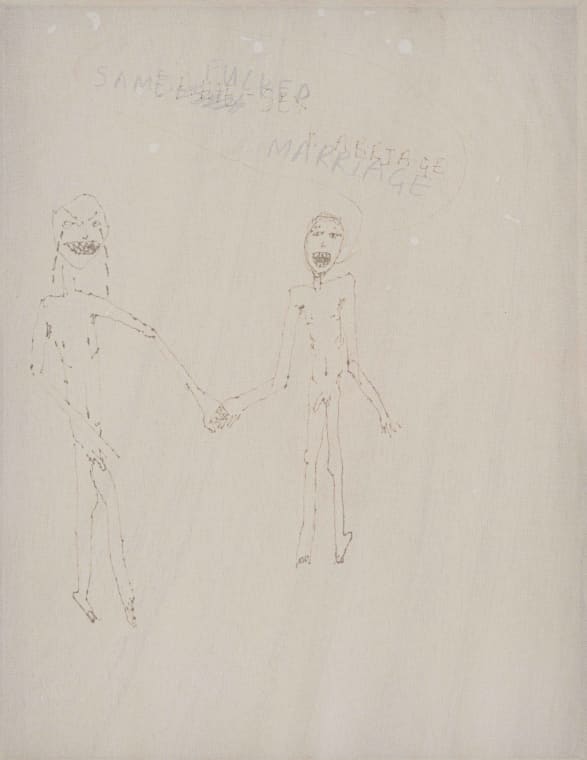 ink on stretched chiffon mounted on wood