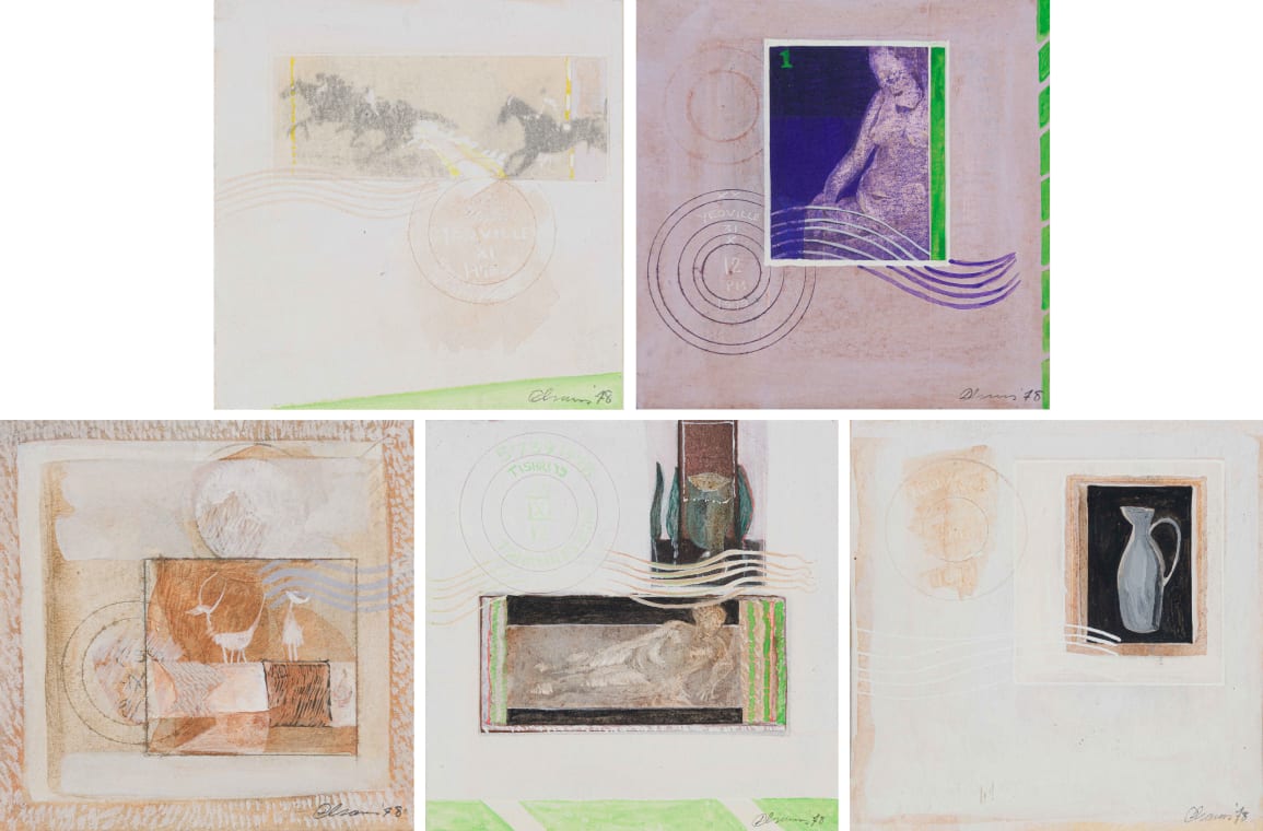 each 8,5 by 8,5cm excluding frame; each 11 by 11 by 6cm, including frame