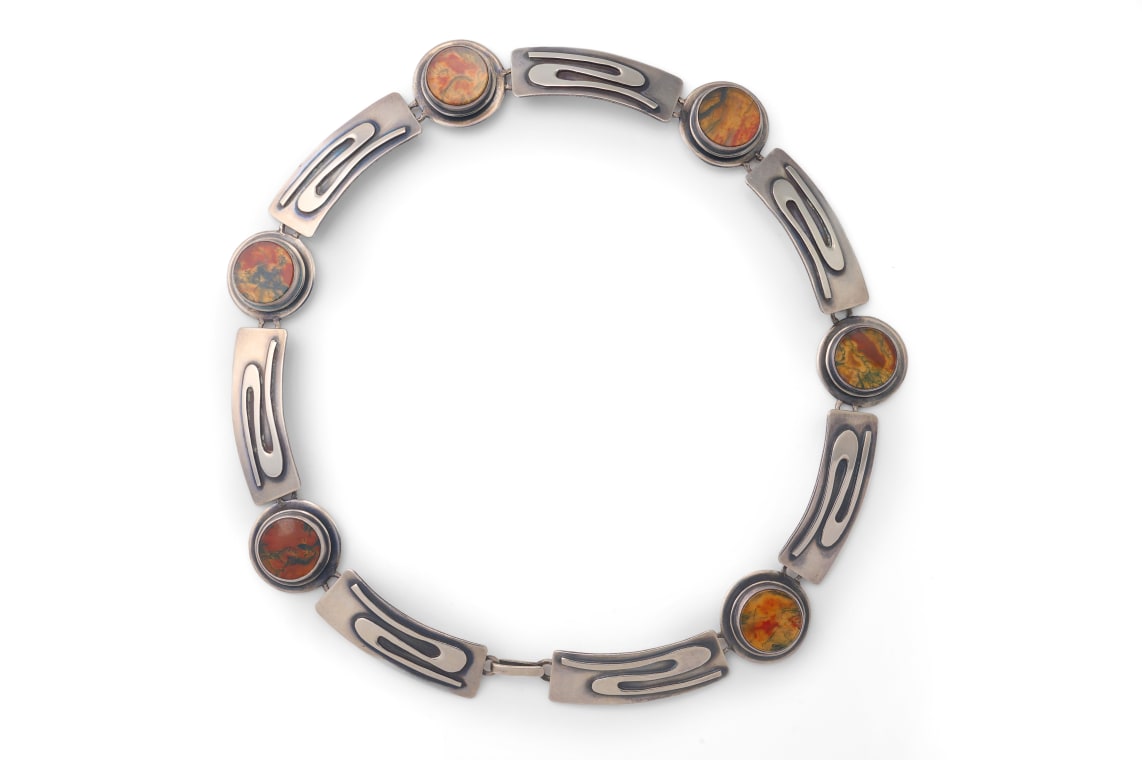 Richardson established her own studio in Cape Town where she worked until relocating to Johannesburg in 1957. She favoured materials such as copper and sterling silver and had a deep appreciation for South African semi-precious stones which she personally sourced and incorporated into her pieces. Some of her pieces are signed LMR, as she was born Ulli/ Lilly Margarete Samuelson in Russia in 1908.