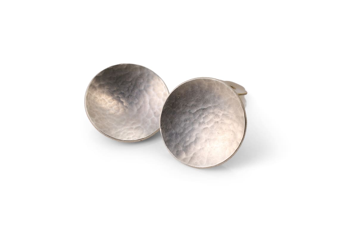 circular domed earrings with hammered texture, clip-on findings, sterling silver, stamped 'Jobst', width approximately 2.3cm, total weight 9.40 grams