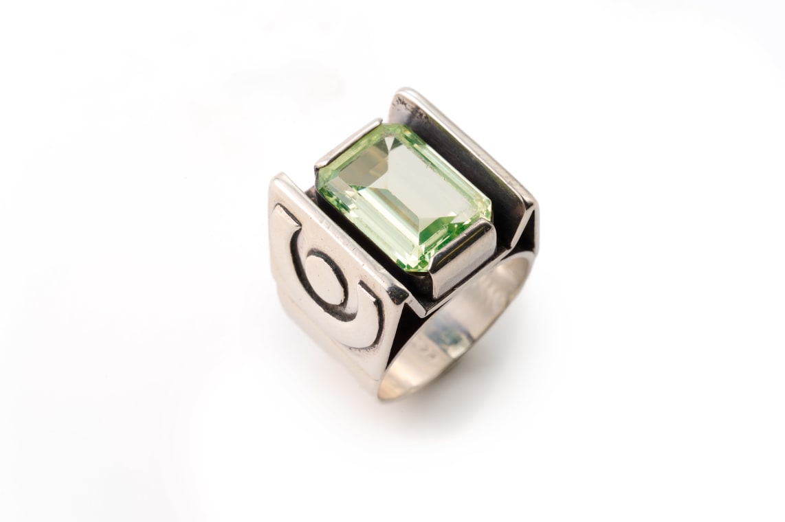 Margaret Richardson geometric green stone ring