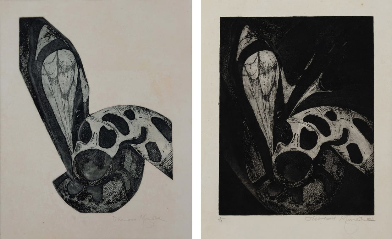 (1) image size: 28 by 22,5cm (2) image size: 29 by 22,5cm; each 46 by 38,5cm including mount