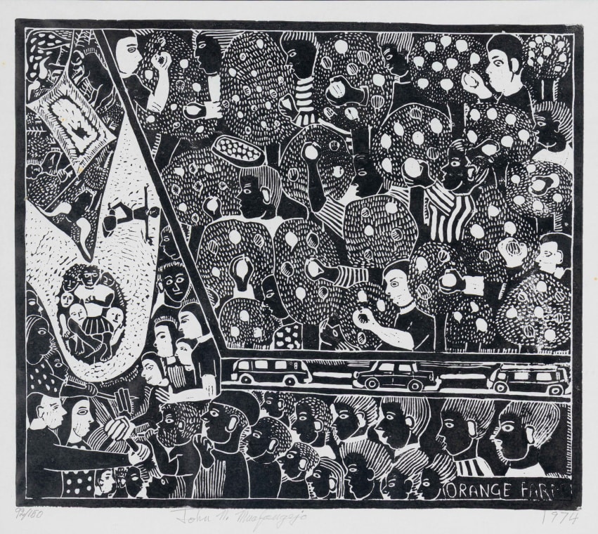 Orde Levinson (1992) I was Lonelyness: The Complete Graphic Works of John Muafangejo, Cape Town: Struik, illustrated on page 87, cat. no. 65.