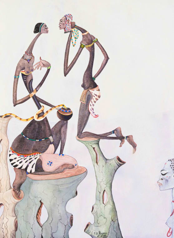 signed and dated; inscribed with the title, 'Painted By P.D Mogano in 1997 J.H.B. (S.A.)' and 'N.Province: (S.A.)' and impressed with the artist's stamp twice on the reverse