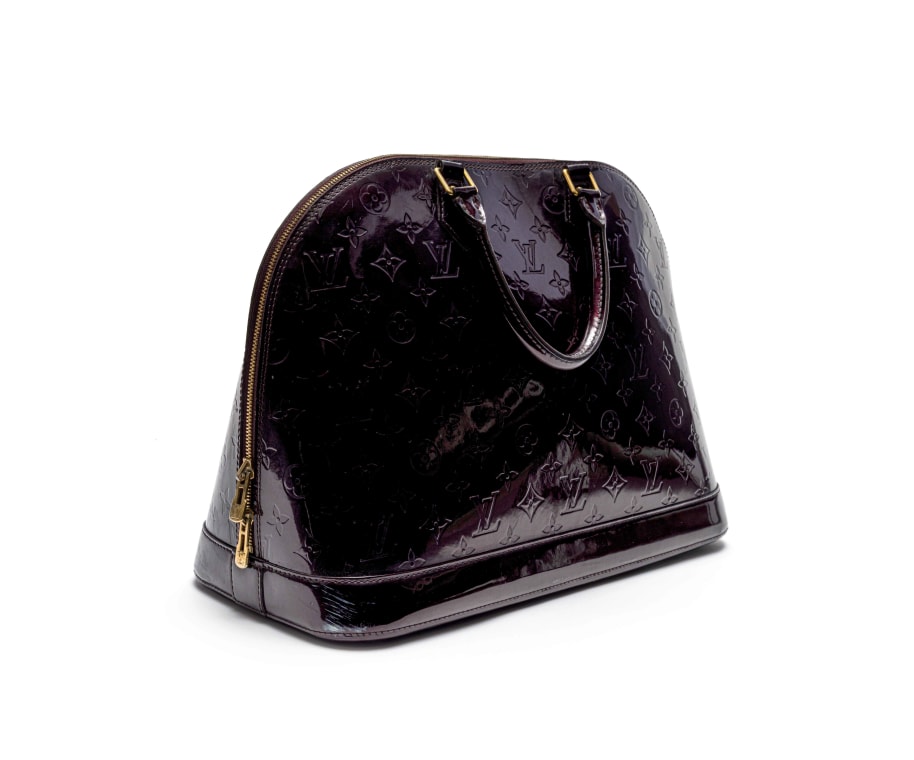 The Alma is one of Louis Vuitton’s most recognisable handbag designs, introduced in the 1930s and reputedly commissioned by Coco Chanel. Its structured silhouette, with clean lines and a gently rounded dome, reflects the Art Deco aesthetic of the period. Over the decades, it has remained a house staple, continually reimagined while retaining its unmistakable form. Here rendered in glossy Monogram Vernis leather, the bag appears in Amarante, a deep aubergine shade that reveals subtle undertones in changing light. The high-shine finish accentuates the embossed monogram pattern, while polished hardware and dual top handles lend classic refinement.