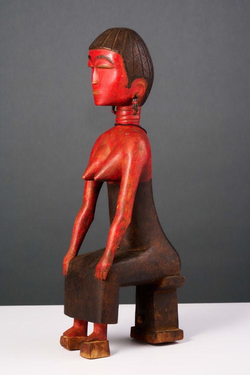 While figures were carved for sale to Western collectors from the early 1900s, many such works have been incorrectly classified as colon simply because they display Western attire. In fact, most are spirit spouse figures, embodying an important spiritual and ritual practice among the Baule.