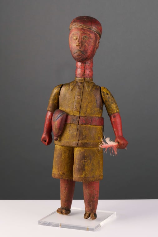 Sometimes described as transitional or hybrid art, colon figures preserve the formal balance, stylisation, and composure typical of indigenous sculpture while incorporating new symbols of foreign power and prestige—pith helmets, military or bureaucratic uniforms, tailored suits, shoes, watches, bicycles, and smoking pipes.
