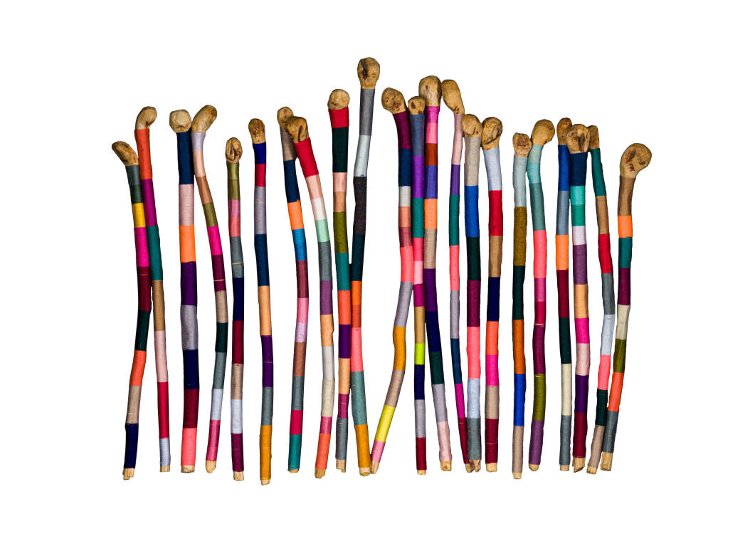 embroidery thread, acrylic and wool on carved wood
