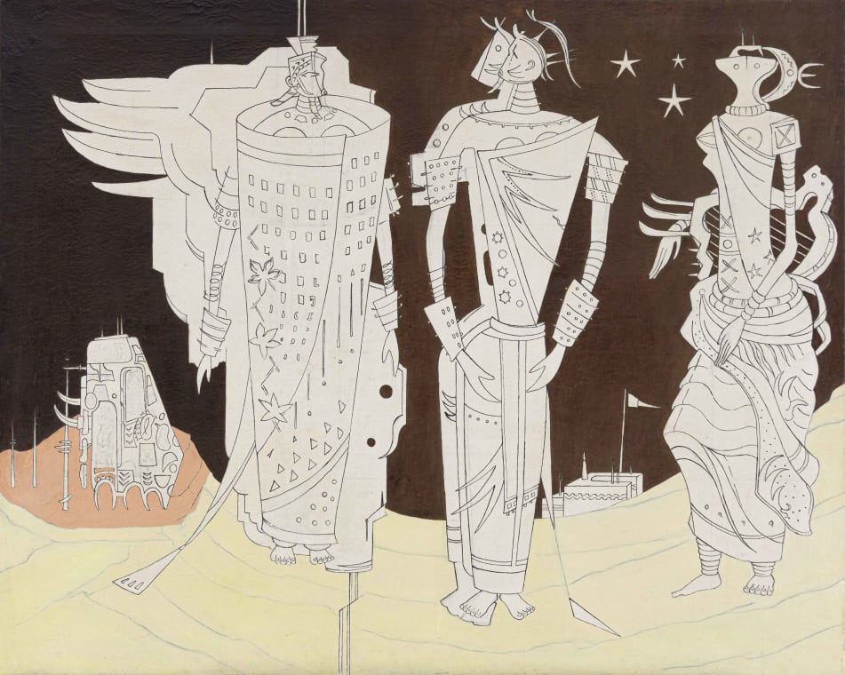 'With Hieratic Women, Preller's mythic Africa has acquired palpable identity. These cryptic figures are numinous icons, images of godly beings who possess their own, independent reality and occupy their own poetic plane within the cosmos of the mythic race.'1