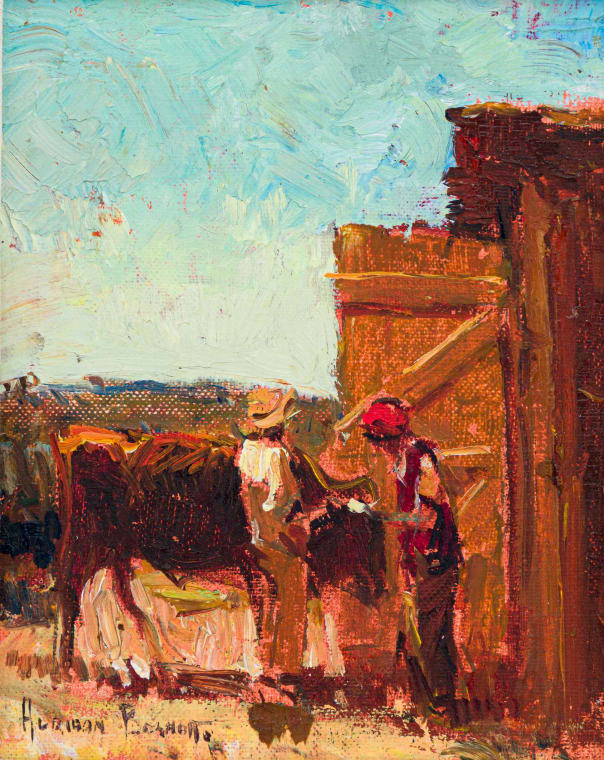Barn Door, Two Figures and Cattle