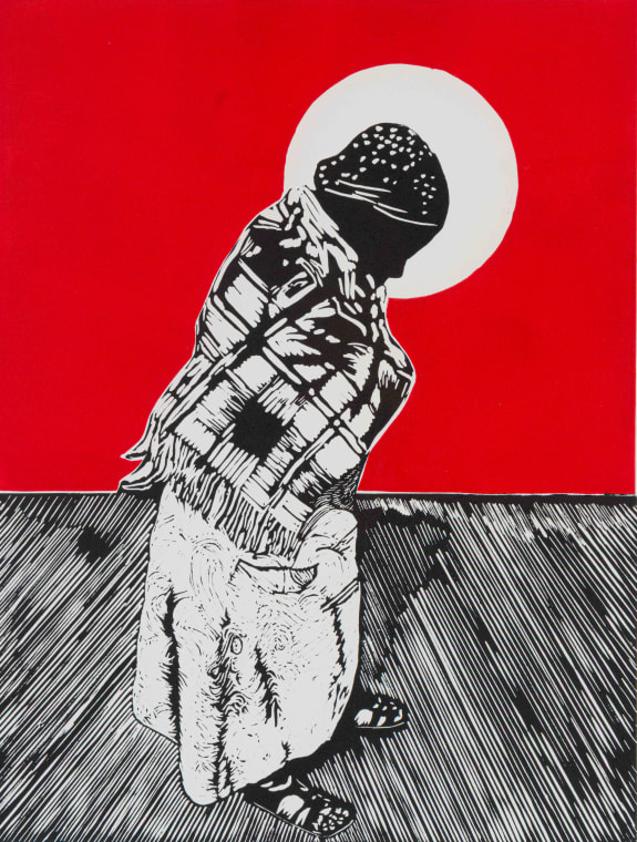 colour linocut on paper